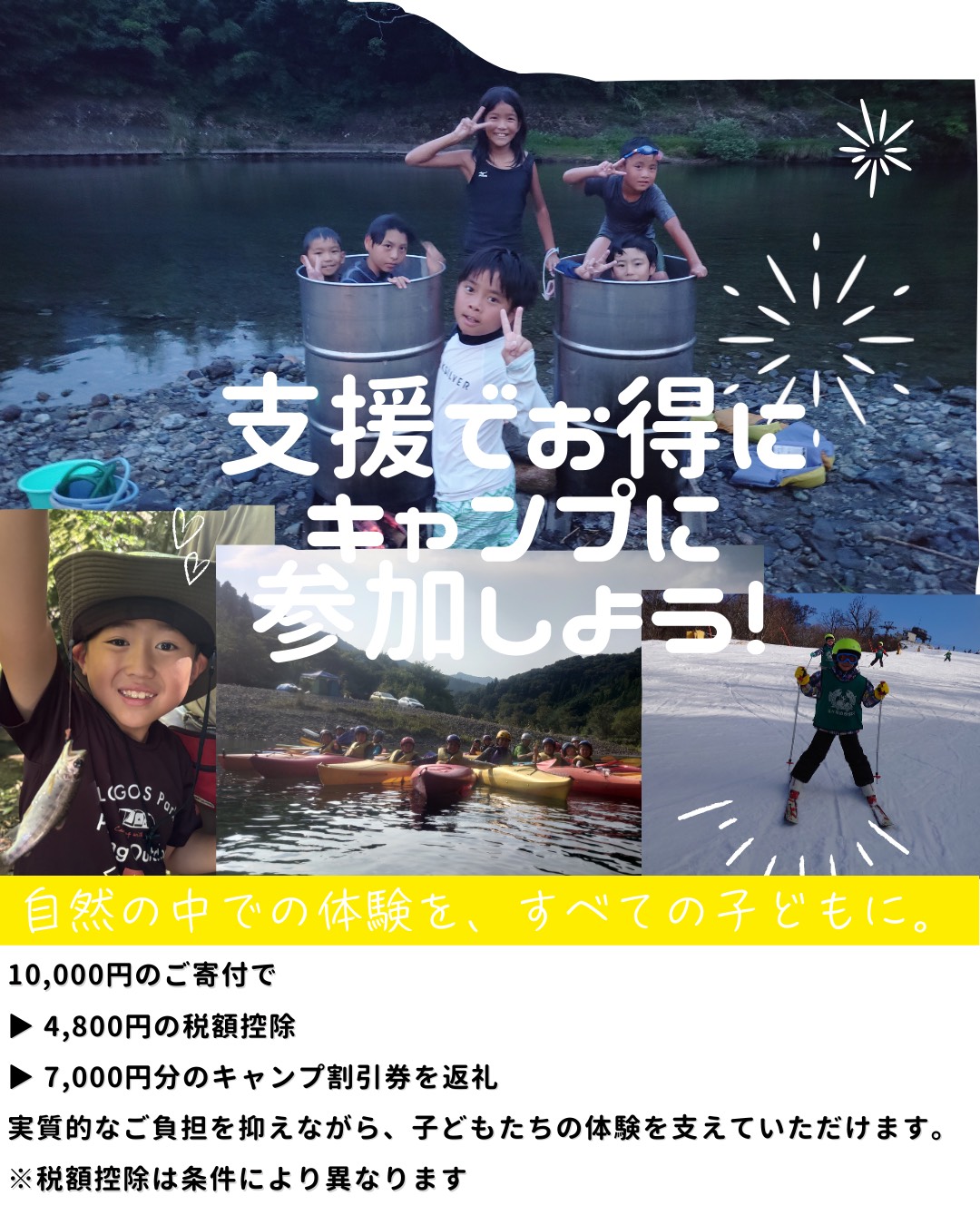 10,000円の寄付で、7,000円分のキャンプ割引券をプレゼント!