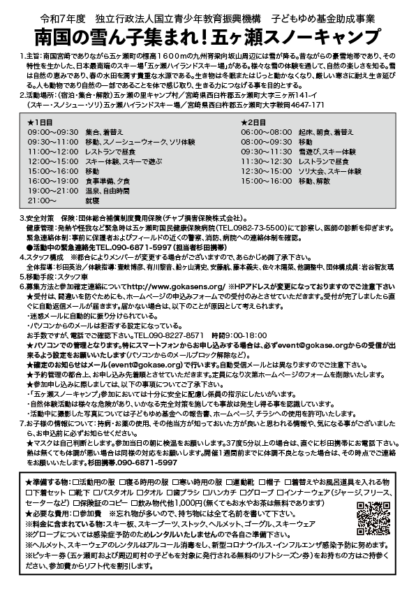 スキー2025/12/22026年1月分五ヶ瀬スノーキャンプ